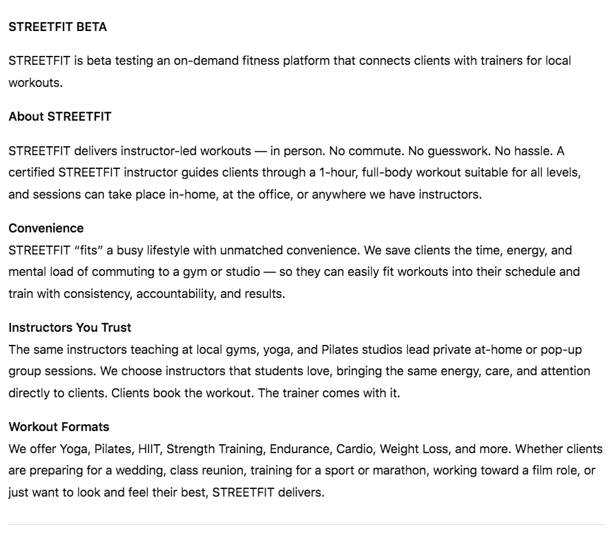 Welcome to STREETFIT Beta